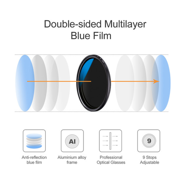 Consigue un control flexible y preciso de la exposición con el filtro K&F Concept de 43 mm True Color Variable ND2–ND400, diseñado para creadores que necesitan versatilidad en condiciones de iluminación cambiantes. Este filtro neutro ajustable cubre un amplio rango de ND2 a ND400 y permite reducir la luz entre 1 y 9 pasos, lo que permite velocidades de obturación más lentas, aperturas más amplias y efectos de movimiento fluidos incluso bajo la luz solar intensa. El filtro está fabricado con cristal óptico de alta calidad y conserva los colores fieles sin tintes indeseados, al tiempo que se mantiene fiel al principio de «densidad neutra»: reduce la cantidad de luz sin alterar los tonos naturales de la escena. Girando el elemento frontal, puedes ajustar fácilmente los niveles de densidad, lo que sustituye la necesidad de varios filtros ND individuales. Este VND también funciona de manera similar a un mecanismo polarizador, ya que regula la cantidad de luz que entra en el objetivo al girarlo. Ya sea que fotografíes agua en movimiento, nubes que se desplazan lentamente, grabes tomas cinematográficas o retratos con poca profundidad de campo en exteriores, este filtro ultradelgado y ligero elimina el viñeteado y garantiza imágenes nítidas y muy luminosas. Gracias a su diseño, es una herramienta indispensable para fotógrafos y cineastas que desean una flexibilidad total en la exposición sin necesidad de procesamiento posterior.