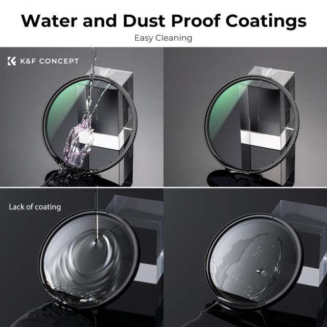 El filtro K&F Concept 46 mm XC15 Nano-X B270 CPL aumenta la intensidad del color y el contraste, al tiempo que reduce los destellos y los reflejos de las superficies no metálicas. Está fabricado con cristal óptico japonés de primera calidad y cuenta con un revestimiento verde Nano-X de 28 capas. Ofrece alta resolución, es resistente al agua y a los arañazos, y tiene un diseño ultradelgado.