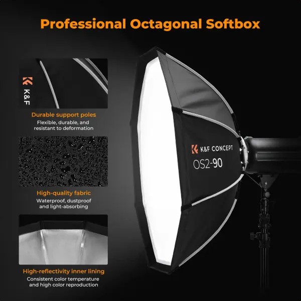 • 1 × Softbox octogonal plano K&F Concept de 65 cm