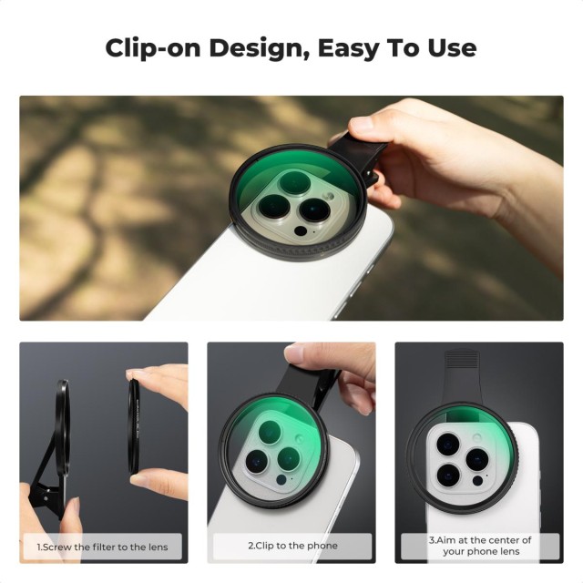 Kit de filtros para cámara de móvil 2 en 1 de 67 mm con CPL y Black Mist, con fijación por clip y rosca de 1/4. Compatible con todos los modelos de teléfonos móviles.