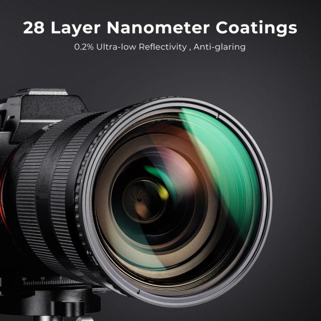 - 【Acabado multicapa】Fabricado con cristal óptico japonés de alta calidad, con un nanorrevestimiento de 28 capas en ambos lados, pulido con arena y oxidación, lo que reduce la reflectividad del objetivo y elimina los destellos. Esto reduce significativamente el efecto de deslumbramiento causado por el reflejo de la superficie exterior del objetivo con exposiciones prolongadas, lo que garantiza una calidad de imagen de primera clase. A prueba de agua, aceite y polvo al mismo tiempo