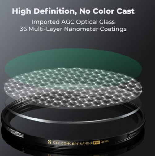 El filtro K&F Concept 77 mm Black Mist 1/8 (serie Nano-X Pro) cuenta con un marco de latón CNC, un revestimiento con una reflectividad extremadamente baja del 0,15 % y una protección nano de 36 capas sobre el cristal óptico AGC para lograr una suave dispersión cinematográfica. Minimiza el efecto de doble imagen, suaviza las texturas de la piel y aporta un brillo onírico a los retratos y las fotografías nocturnas, al tiempo que conserva los detalles. Es resistente al agua, al aceite y a los arañazos, por lo que es duradero y fácil de limpiar.