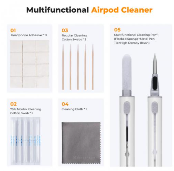 • Paño de microfibra: pulido sin pelusa para un brillo totalmente nuevo de los auriculares y los estuches
