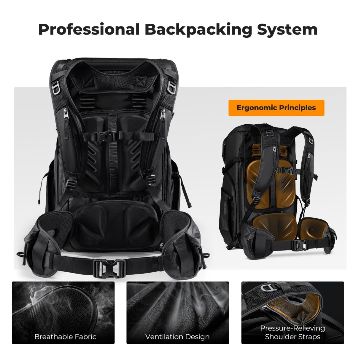 • * 【Espacio de almacenamiento personalizable con separador extraíble】Esta mochila cuenta con un separador interior profesional y 8 separadores ajustables que permiten organizar de forma flexible varias cámaras, objetivos, drones y accesorios. El panel interior se puede extraer o reubicar fácilmente para alternar entre la fotografía y el uso diario.