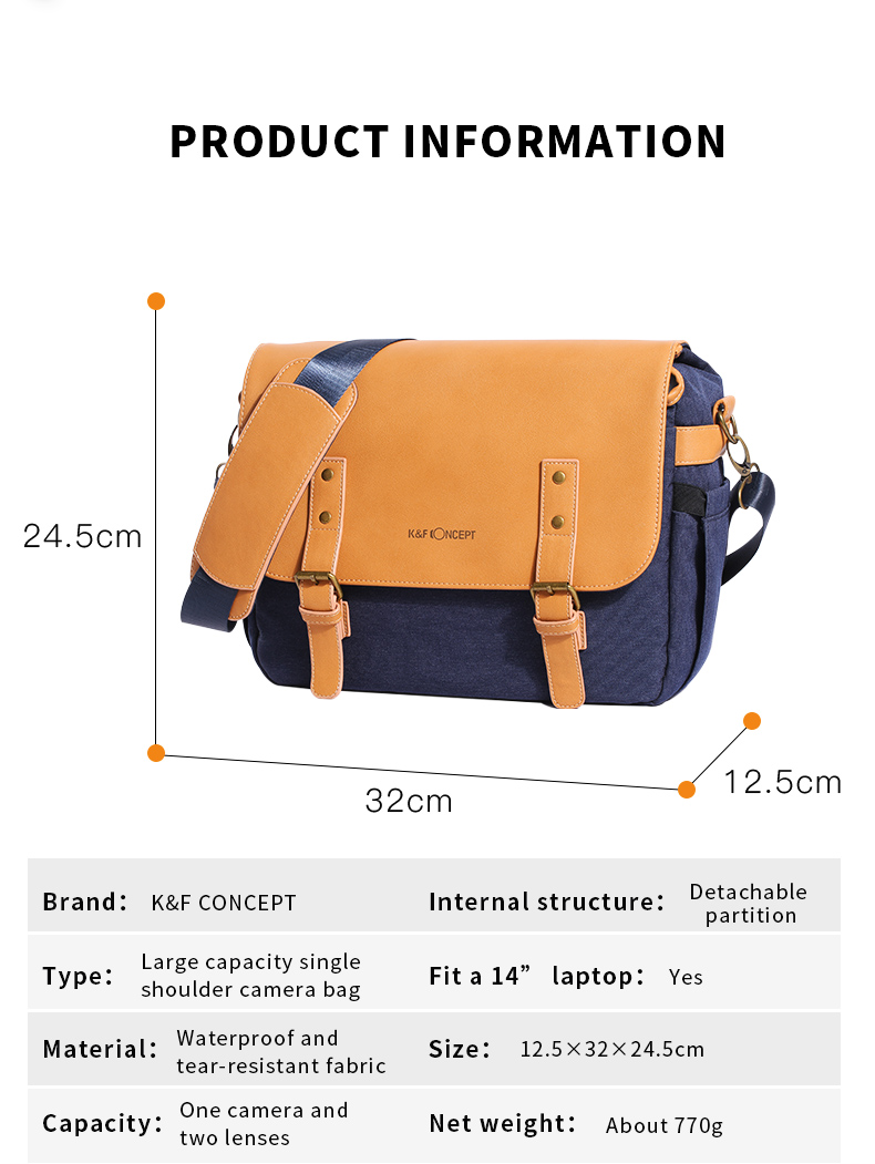 Bolso impermeable de hombro para cámara digital K&F Concept. Bolso profesional impermeable para cámara fotográfica. Capacidad: 1 cámara + 2 objetivos y otros accesorios.