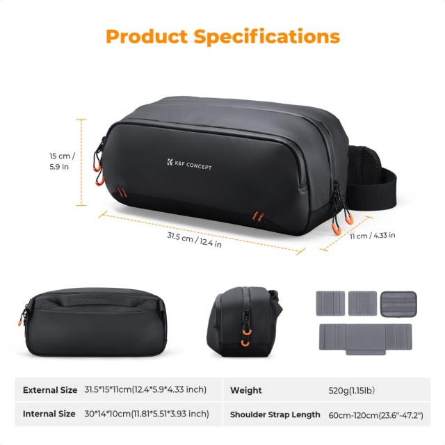La bolsa de almacenamiento digital de K&F Concept es la compañera perfecta para los creadores modernos que utilizan varios dispositivos y viven nuevas aventuras cada día. Esta bolsa compacta pero espaciosa puede albergar fácilmente consolas portátiles como la Steam Deck o la Switch 2, equipos para vlogging como la DJI Pocket 3 o la Action 4, cámaras sin espejo completas de Sony, Canon o Nikon, así como los objetos imprescindibles para el uso diario, como teléfonos y baterías externas. En el interior destaca un sistema flexible de múltiples compartimentos con separadores antichoque y ajustables para asegurar tu equipo, un bolsillo especial para baterías que evita cortocircuitos y arañazos, y una cremallera frontal para acceder rápidamente a objetos como llaves o auriculares. Está fabricada con un tejido de PU resistente e hidrófugo, con cremalleras impermeables selladas en ambos lados y un forro reforzado que protege los dispositivos electrónicos de la lluvia, los golpes y los impactos. Con unas dimensiones de tan solo 31,5 cm x 15 cm x 11 cm, es ideal para equipos de vlogging o equipaje de viaje, y cuenta con un bolsillo de seguridad oculto para objetos de valor. La correa ajustable y extraíble permite cambiar fácilmente entre los modos de hombro, cruzado o de mano, lo que garantiza comodidad durante todo el día en los desplazamientos, durante las grabaciones o al crear contenido mientras viajas.