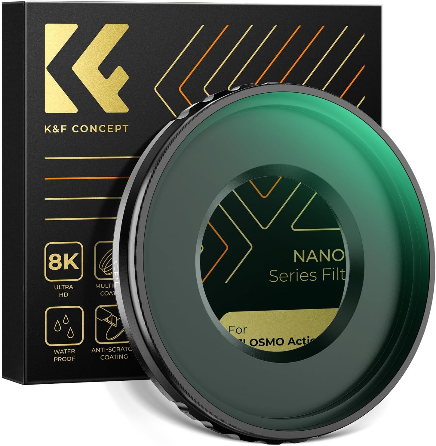 El filtro CPL de K&F Concept para la DJI Osmo Action 4 reduce los destellos y los reflejos, al tiempo que aumenta la intensidad del color y el contraste. Está fabricado con cristal óptico japonés AGC de primera calidad y un resistente marco de aleación de aluminio, y ofrece una alta resolución de imagen y una protección fiable durante la fotografía de acción.