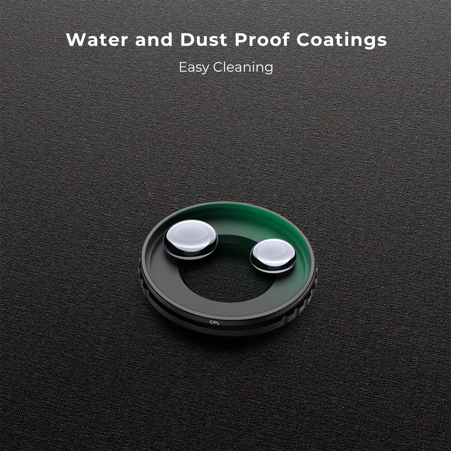 El filtro está fabricado con cristal óptico japonés AGC de alta calidad y garantiza una excelente transmisión de la luz y una calidad de imagen nítida. Su avanzada capa nanométrica de 28 capas minimiza los reflejos y las imágenes fantasma, al tiempo que proporciona una protección impermeable, resistente a los arañazos y al aceite. Su marco de aleación de aluminio, ligero pero resistente, garantiza una fijación segura sin afectar al equilibrio del gimbal ni al rendimiento de la cámara. Este filtro CPL, diseñado para ofrecer resistencia y nitidez, es un accesorio imprescindible para los usuarios de la DJI Osmo Action 4 que buscan una calidad profesional en sus tomas en condiciones de iluminación difíciles.