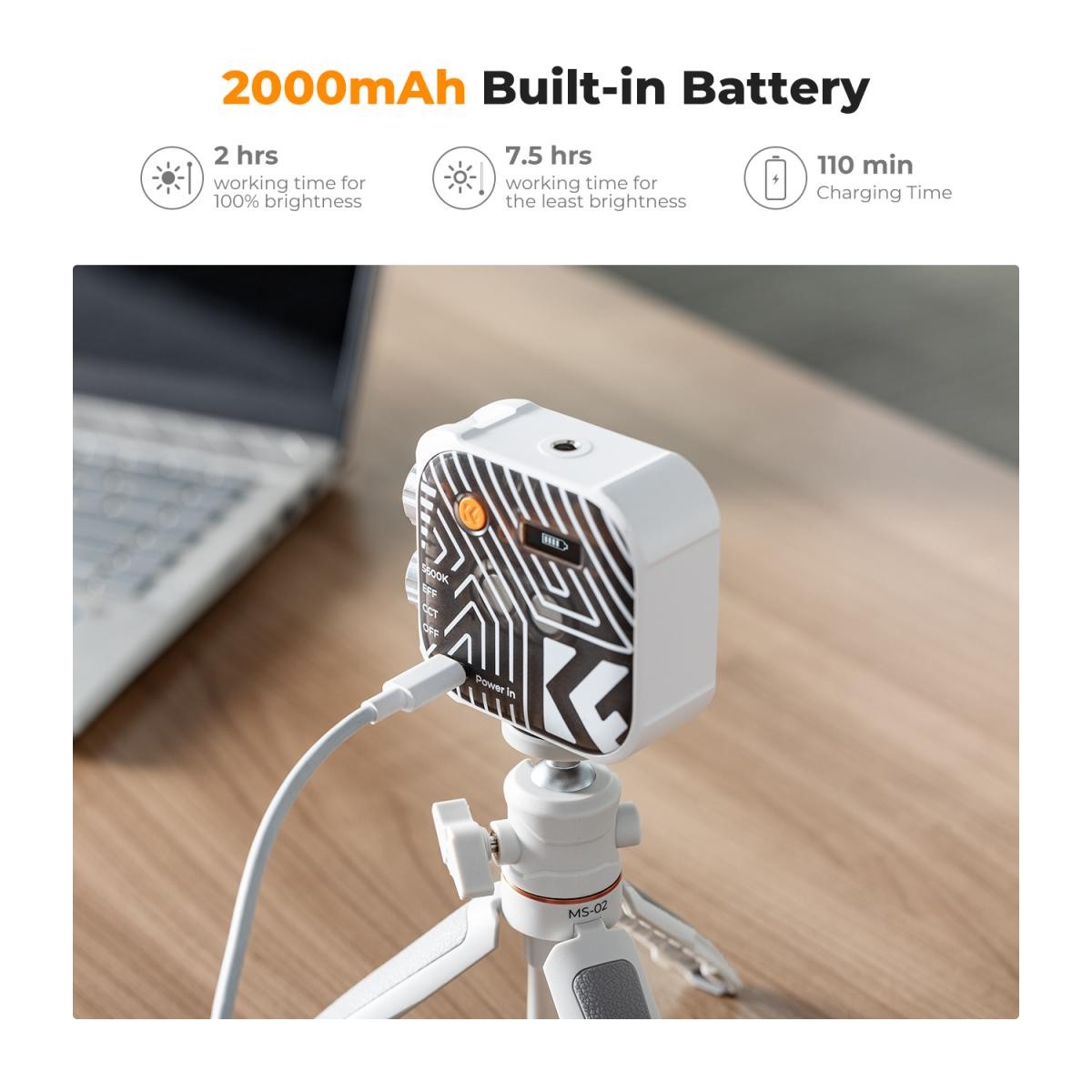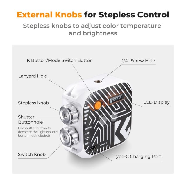- * 【Varias formas de instalación】El producto cuenta con dos orificios para tornillos de 1/4", que permiten montarlo en un soporte de iluminación. En combinación con el adaptador para zócalo frío incluido, se puede instalar en una cámara. En la parte trasera del producto hay imanes que permiten fijarlo a objetos metálicos. Además, la carcasa del producto cuenta con un orificio para cordón. Con el cordón, se puede colgar de la muñeca para transportarlo o de un gancho para guardarlo.