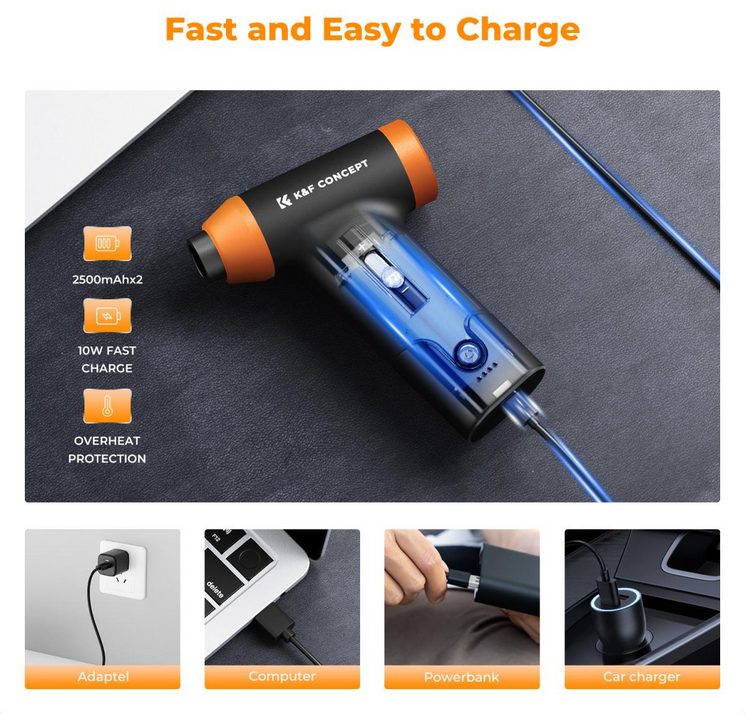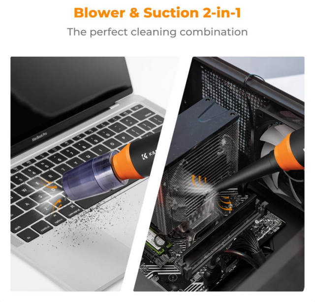 Tanto si limpias aparatos electrónicos delicados como si te enfrentas a grandes cantidades de polvo, el aspirador eléctrico K&F Concept Air Duster es una solución fiable y ecológica.