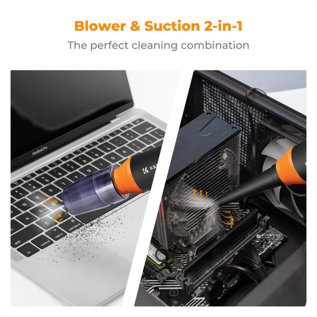 El kit de limpieza eléctrico K&F CONCEPT es un limpiador de aire recargable, compacto pero potente, con un motor sin escobillas de alta velocidad, caudal de aire regulable y varias boquillas para una limpieza versátil. Está diseñado como una alternativa ecológica a los botes de aire comprimido desechables y proporciona un chorro de aire potente y preciso para la limpieza a fondo de dispositivos electrónicos, vehículos y otros equipos.