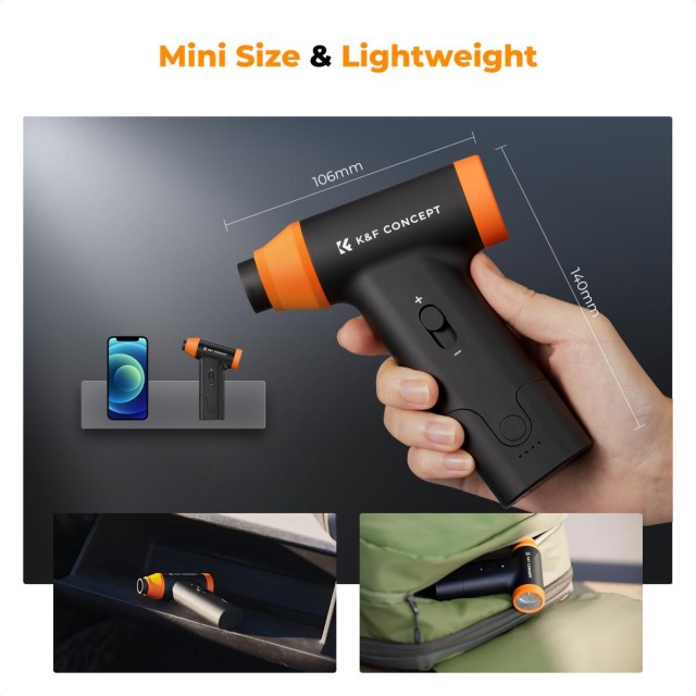 Este soplador en miniatura es compacto, ligero y de diseño ergonómico, pesa solo 223,59 g y mide 13,5 × 10,5 × 3,5 cm, por lo que es fácil de transportar y cómodo de sujetar. La resistente carcasa de plástico ABS proporciona una excelente resistencia a los golpes y una larga vida útil. Como solución reutilizable y de bajo consumo energético, ofrece una alternativa rentable y ecológica a los botes de aire comprimido tradicionales.