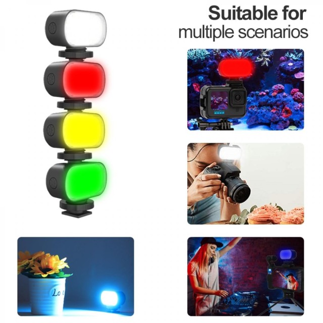 * Pequeño tamaño, gran efecto: la luz está equipada con un adaptador con boca de zapata fría y una abrazadera giratoria universal de 1/4 en la parte inferior, lo que la hace adecuada para su instalación en una cámara, un trípode, un soporte de iluminación u otros soportes.