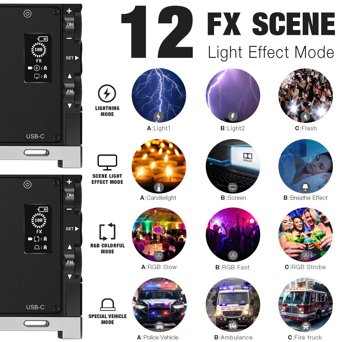 Luz de relleno RGB a todo color, linterna de bolsillo, batería recargable integrada de 12 W, luz LED para cámara de 360°, 12 efectos de luz, luz de vídeo en panel de aleación de aluminio