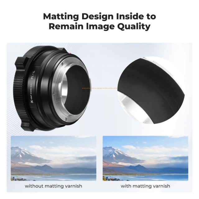 Adaptador de alta precisión K&F Concept PL-L: adaptador manual de PL a L-mount con enfoque continuo, fabricado en aluminio anodizado duro y con interior mate, para cámaras Leica, Panasonic LUMIX y Sigma L-mount.