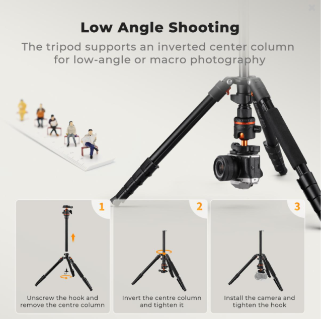K&F Aluminium Camera Tripod with Transverse Center Column T255A3+BH-28L