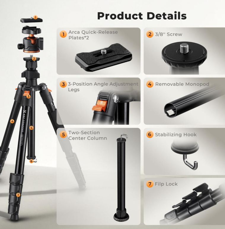 El trípode ligero K&F Concept de 75" es un trípode compacto y versátil diseñado para