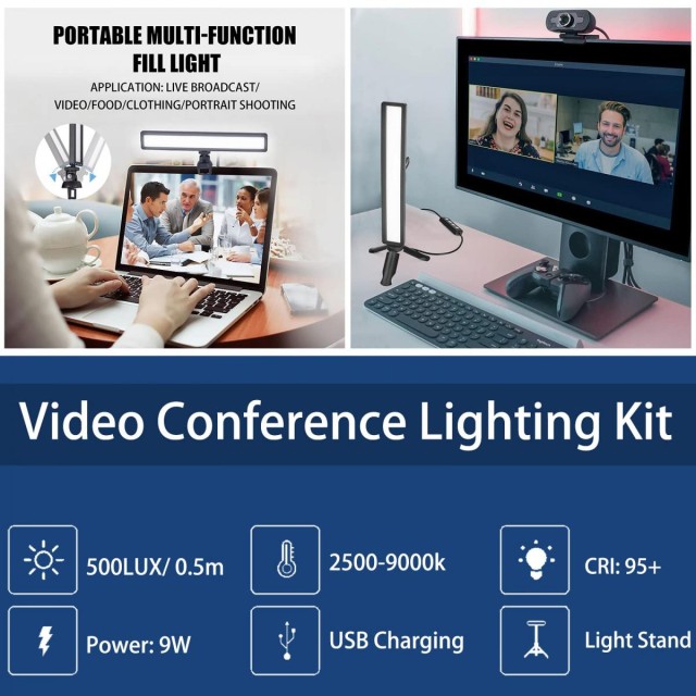 Juego de luces LED para videoconferencias, regulables en 3 colores, 2500 K-9000 K. Iluminación LED USB para videoconferencias con soporte ajustable para trípode y pinzas regulables, ideal para YouTube, retransmisiones en directo, iluminación, reuniones, videojuegos y streaming.