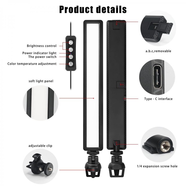 * 【Alimentación mediante USB】 Esta luz de vídeo se alimenta únicamente a través de un puerto USB-C (5 V/2 A); no incluye batería ni adaptador de carga. Durante su uso, puede conectarla a un portátil, un ordenador de sobremesa, un cargador de red, un powerbank, etc.;