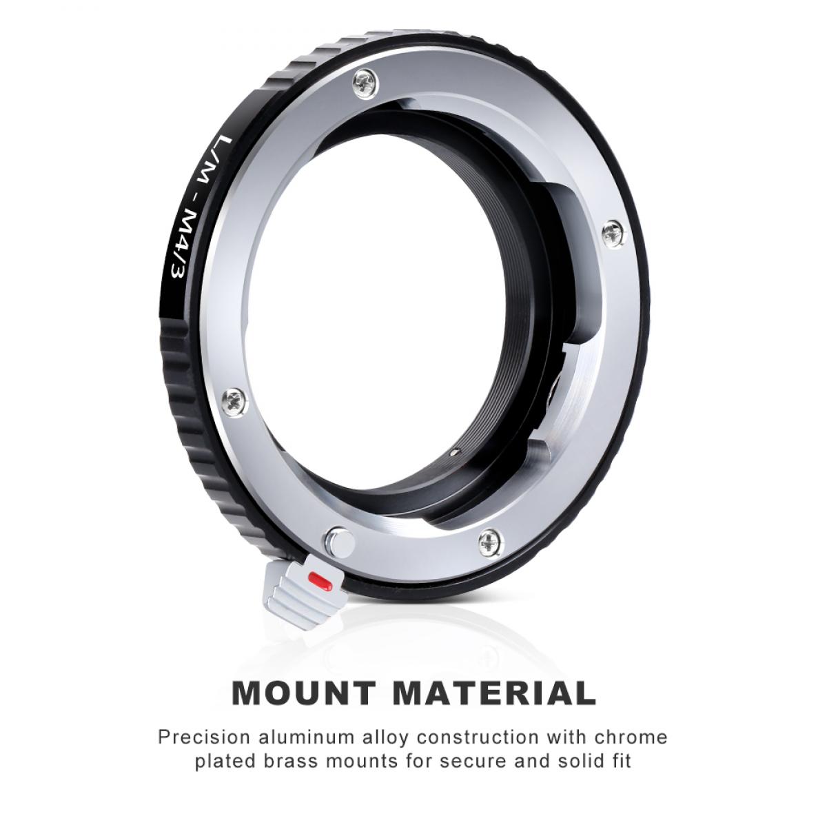 Aprovecha todo el potencial de tu cámara Micro Four Thirds (M4/3) con el adaptador Leica M Mount para objetivos MFT. Este adaptador permite integrar sin problemas los objetivos con montura Leica M en los cuerpos de las cámaras Micro Four Thirds, ampliando así la compatibilidad de tus objetivos. Este adaptador es compatible con toda una gama de cámaras Micro Four Thirds, incluidas las Panasonic Lumix y las Olympus PEN y OM-D, y está diseñado para ofrecer una estabilidad y precisión óptimas. Su resistente construcción, fabricada en latón y aluminio, garantiza una larga vida útil. El control manual permite enfocar al infinito, lo que proporciona flexibilidad a la hora de fotografiar. Para objetivos de formato medio más pesados, se recomienda utilizar un soporte para teleobjetivos y un trípode para un equilibrio óptimo. Mejora tu experiencia fotográfica gracias a este versátil adaptador para objetivos.