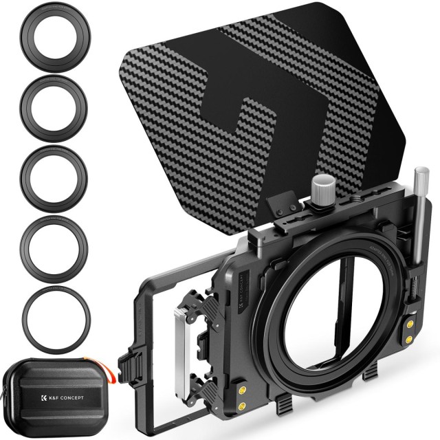 Protege tus visiones cinematográficas de los reflejos no deseados con el kit de matte box de K&F Concept, una solución profesional para fotógrafos que utilizan cámaras réflex digitales y sin espejo y que buscan una imagen nítida y de alto contraste. Esta caja mate de 34 mm de grosor, fabricada en fibra de carbono ultraligera con un elegante acabado mate y un innovador diafragma expansible, bloquea eficazmente la luz difusa y elimina el viñeteado, incluso con objetivos supergranangulares de 16 mm (nota: no es compatible con el objetivo Sony FE PZ 28-135 mm f/4 OSS). El sistema universal de dos compartimentos sujeta de forma segura dos filtros de 4x5,65" (con un grosor de hasta 4 mm) gracias a un mecanismo de bloqueo fiable, lo que permite cambiar fácilmente filtros ND, difusores o filtros de corrección de color en escenas dinámicas. Cinco anillos adaptadores de precisión (67/72/77/82/95 mm) garantizan una amplia compatibilidad con los objetivos, mientras que los puertos integrados de 1/4", 3/8" y zapata fría abren infinitas posibilidades para fijar micrófonos, monitores o follow-focus. Gracias a las placas de extensión laterales y de riel, está preparado para el futuro y se adapta fácilmente a los cambios de configuración. Este kit, que se suministra con una bolsa de transporte protectora, ofrece portabilidad y resistencia para cineastas, operadores de cámara especializados en naturaleza salvaje o profesionales de estudio, y mejora la calidad de cada toma gracias a su nitidez óptica y libertad creativa.