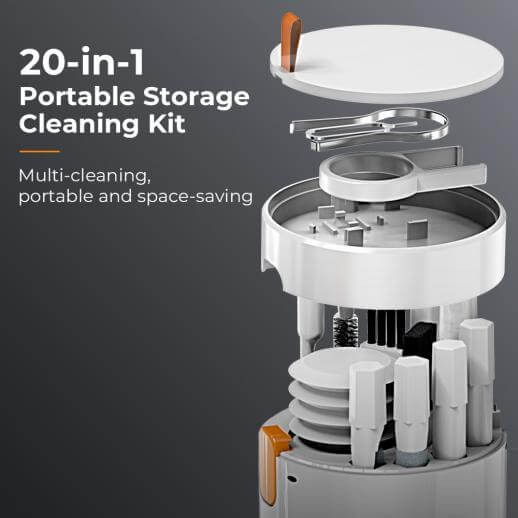 Mantén tus dispositivos impecables gracias al kit de limpieza multifunción K&F Concept 20 en 1. Este kit todo en uno incluye paños de microfibra, cepillos, soplador de aire, líquido limpiador y mucho más; es apto para pantallas, lentes, teclados y dispositivos, por lo que es ideal para usar en casa, en la oficina o cuando estás de viaje.