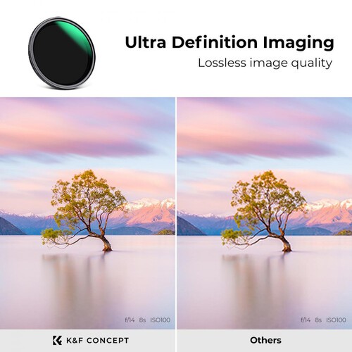 El filtro K&F Concept Nano-X Variable ND 3–7 pasos (58 mm) está diseñado para fotógrafos y videógrafos que buscan rapidez, comodidad y precisión. Gracias a su rango ND variable de ND8 a ND128, permite un control fluido de la exposición en condiciones de luz cambiantes, lo que lo convierte en la opción ideal para la grabación de vídeo, las exposiciones prolongadas y la fotografía creativa.
