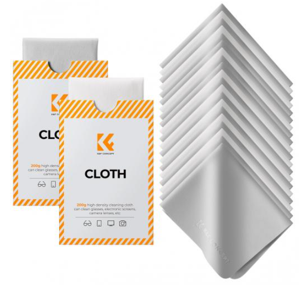Los paños de limpieza K&F Concept Premium Microfiber están fabricados con precisión para el mantenimiento profesional de dispositivos ópticos y electrónicos. Están fabricadas con microfibra de alta densidad de 200 g/m² (80 % poliéster, 20 % poliamida) con fibras ultrafinas de 0,1 denier, que penetran en las microestructuras de la superficie para eliminar y capturar el polvo, las huellas dactilares, la grasa y los aceites sin sustancias abrasivas ni residuos de fibras. Cada paño, de 15 x 18 cm, está cortado con láser con bordes rectos para poder limpiar a fondo lentes, sensores y pantallas de esquina a esquina, minimizar el deshilachado de los bordes y prolongar la vida útil a más de 50 ciclos de lavado (lavado a máquina en frío, secado al aire). El envase ligero y portátil de 20 unidades cabe en un bolsillo o en una bolsa de cámara, lo cual es imprescindible para fotógrafos, videógrafos y usuarios de tecnología que limpian objetivos de cámaras DSLR, prismáticos, telescopios, smartphones, tabletas, monitores o joyas.
