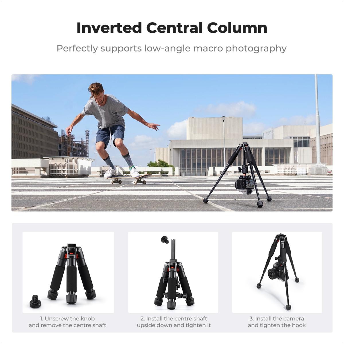 El K&F Concept S225A0+BH-25L es un trípode compacto y potente para fotógrafos y videógrafos que buscan estabilidad sin un volumen excesivo. Este mini trípode de mesa, que pesa solo 638 g y se puede plegar hasta un tamaño de bolsillo de 23,5 cm con la articulación cardán (solo las patas miden 16,5 cm), cuenta con patas de 5 secciones de aleación de aluminio con un innovador diseño excéntrico de los tubos para un ajuste preciso e independiente de la altura y cierres de apriete rápido. Gracias al ajuste de ángulo en tres niveles y al eje central elevable, permite transiciones fluidas entre los modos de fotografía horizontal, vertical, por encima de la cabeza, de ángulo bajo e invertido, además de una rotación panorámica completa de 360° para composiciones dinámicas. La rótula BH-25L soporta sin esfuerzo hasta 6 kg y cuenta con patas de 22 mm de diámetro, diseñadas para ofrecer una gran resistencia, resistencia a bajas temperaturas y resistencia al desgaste. La compatibilidad es perfecta gracias a la placa de fijación rápida de 1/4", el soporte universal para teléfono y el orificio de expansión adicional de 1/4", ideal para cámaras réflex digitales, cámaras sin espejo, cámaras de acción o smartphones en aplicaciones de escritorio, de viaje o creativas.