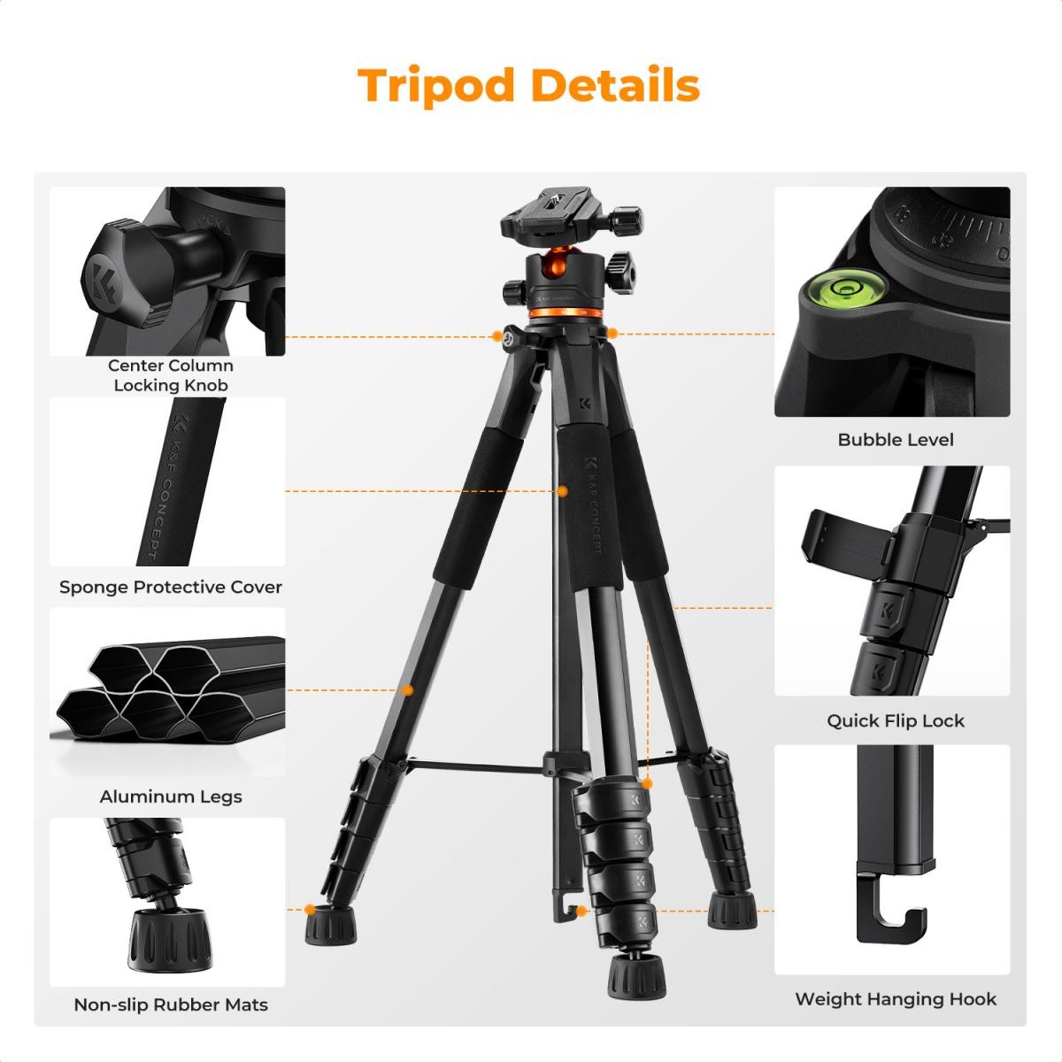 - * 【Diseño innovador con tubos pentagonales】 Este trípode ligero (1,3 kg) está diseñado para ser estable y fácil de transportar, y cuenta con unos exclusivos tubos pentagonales que le confieren mayor resistencia y facilitan su plegado. Gracias a sus dimensiones compactas de 48 cm cuando está plegado, es fácil de transportar, por lo que es ideal para viajar, hacer fotos al aire libre y para uso profesional, incluso en terrenos difíciles.