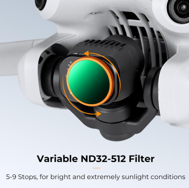 Un cambio revolucionario en tus grabaciones con dron gracias al filtro K&F Concept Variable ND32-512, una mejora imprescindible diseñada específicamente para el DJI Mini 4 Pro, que te permitirá superar la intensa luz solar y disfrutar de un control profesional de la exposición durante el vuelo. Este filtro neutro variable ofrece un ajuste continuo desde ND32 (5 pasos) hasta ND512 (9 pasos) y permite a los pilotos ajustar con precisión la entrada de luz para obtener tomas aéreas de una suavidad sedosa, exposiciones largas y dramáticas de nubes u olas, o efectos con poca profundidad de campo, todo ello manteniendo colores vivos, detalles nítidos y un contraste natural sin los tonos indeseados ni los artefactos que afectan a los filtros de menor calidad.