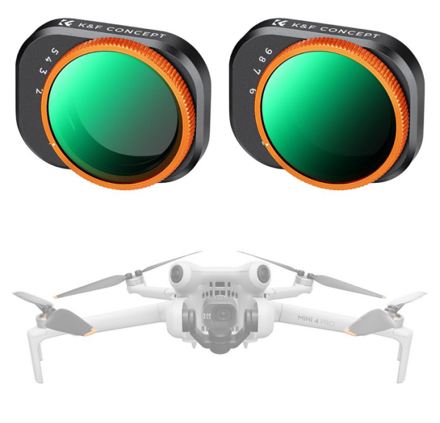Mejora las fotografías aéreas de tu cámara DJI Mini 4 Pro con el kit de filtros K&F Concept Variable ND Lens Filter Kit. Este kit de 2 filtros incluye los filtros ND2-32 (1-5 pasos) y ND32-512, que ofrecen una reducción precisa de la luz y una exposición equilibrada para capturar impresionantes imágenes desde el dron. Gracias al cristal óptico de alta calidad, los recubrimientos nanométricos de 28 capas y el diseño de acoplamiento rápido, son perfectos para tu dron.
