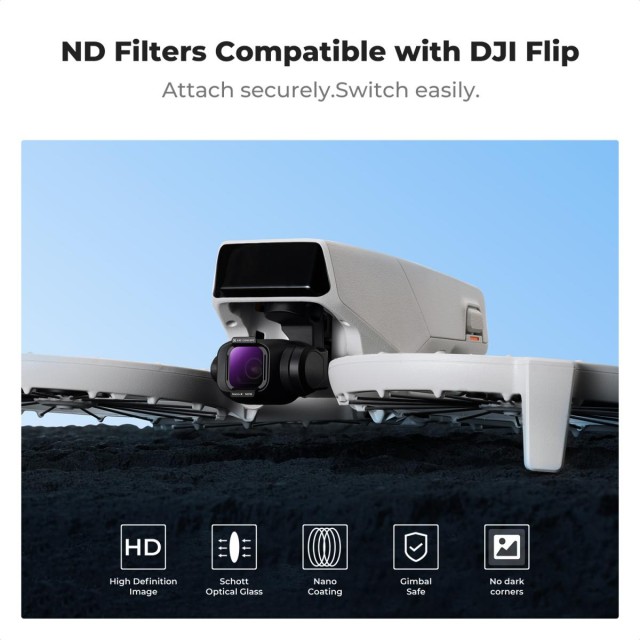• * 【Compatible con DJI Flip】 Este nuevo juego de 4 filtros ND de K&F Concept es compatible con la cámara DJI Flip 4K UHD. Ayuda a ajustar la velocidad de obturación, reducir los reflejos, mejorar los colores y lograr una exposición perfecta en diversas condiciones meteorológicas, capturando imágenes más coherentes y fluidas.