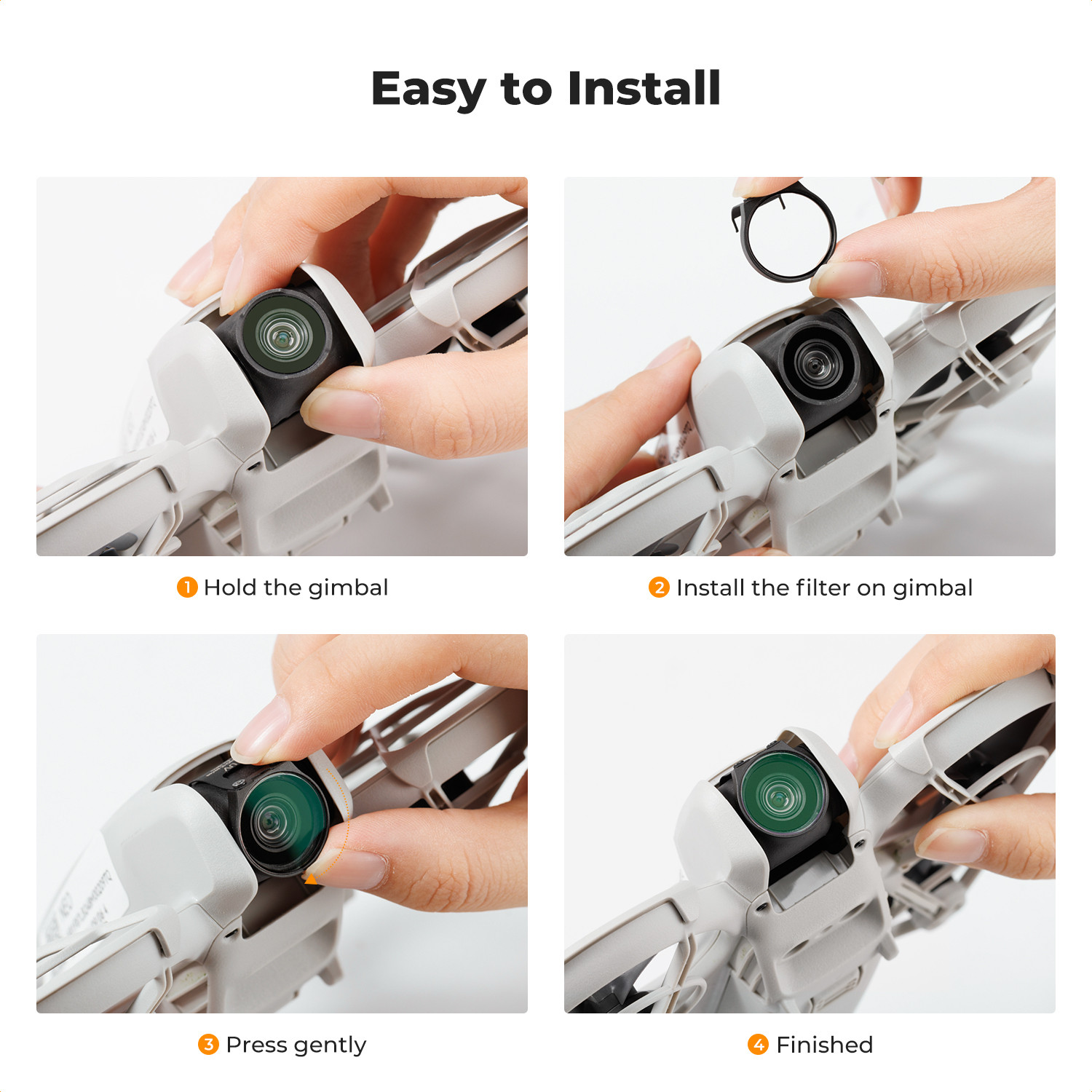 El filtro está diseñado con una estructura ultraligera, por lo que se adapta perfectamente al gimbal DJI NEO sin afectar al equilibrio ni al rendimiento. Su diseño a presión garantiza una fácil instalación y desmontaje, y el borde ennegrecido reduce los reflejos difusos, lo que permite una captura de alta calidad incluso en condiciones de iluminación difíciles. El paquete incluye un paño de limpieza para mantener la lente en perfecto estado.