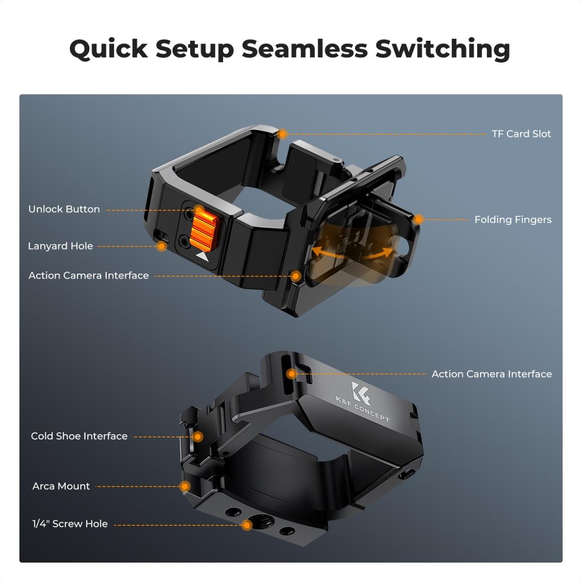 Se trata de un marco extensible multifuncional de aleación de aluminio, un accesorio diseñado específicamente para la DJI Osmo Pocket 3. Puedes cambiar la tarjeta TF sin necesidad de desmontar el marco extensible, puedes utilizar el joystick y los botones con total normalidad y puedes acoplar el mango a la parte inferior como de costumbre. La cámara no sufre desgaste durante el uso de este producto. Se puede guardar en su funda protectora original.
