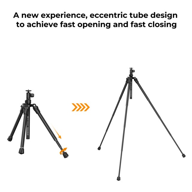 El trípode flexible de K&F Concept ofrece funciones versátiles y se transforma fácilmente de trípode a soporte de mesa y a palo selfie para adaptarse a diversas necesidades fotográficas, ya sea que viajes, grabes vlogs, realices transmisiones en directo o similares. Su diseño único con tubo excéntrico garantiza un ajuste rápido y sencillo, para que puedas concentrarte en fotografiar sin perder tiempo. Este trípode es muy fácil de transportar para viajar, cuenta con un tubo ajustable de 4 secciones con un rango de 36 cm/14,1'' a 170 cm/66,9'' y una longitud compacta de tan solo 30 cm/11,8'' cuando está plegado, con un peso de apenas 0,88 kg/1,94 lbs. Cuenta con una excelente compatibilidad, ya que está equipado con una rosca estándar de 1/4" adecuada para la mayoría de las placas de fijación rápida Arca-Swiss y un tornillo de 1/4" para diversos dispositivos, incluyendo cámaras, cámaras réflex digitales, proyectores, telescopios e incluso teléfonos móviles para selfies, retransmisiones en directo y time-lapse. Gracias a su robusta capacidad de carga de 4 kg/8,8 lb y a su diseño fluido sin amortiguación de aceite, facilita el giro preciso de la cámara, mientras que la escala horizontal de 360 grados en la base mejora las fotografías panorámicas y ofrece resultados impresionantes que rivalizan con los objetivos ultra gran angulares.