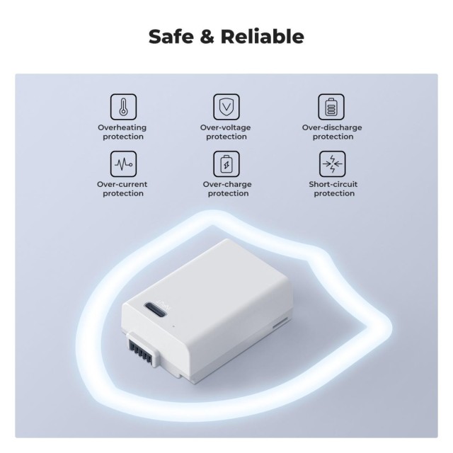 • * 【Gran capacidad de la batería】Esta batería USB-C, con una capacidad de 1250 mAh, 7,6 V y 9,5 Wh, es ideal para sesiones fotográficas prolongadas y no presenta efecto memoria.