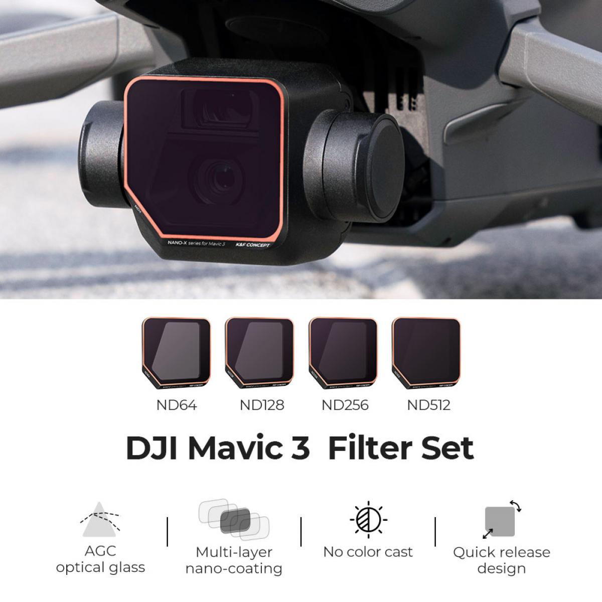 Juego de filtros ND K&F Concept compatible con DJI Mavic 3/Mavic 3 Cine, paquete de 4 (ND64/ND128/ND256/ND512) con 28 capas multicapa
