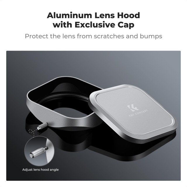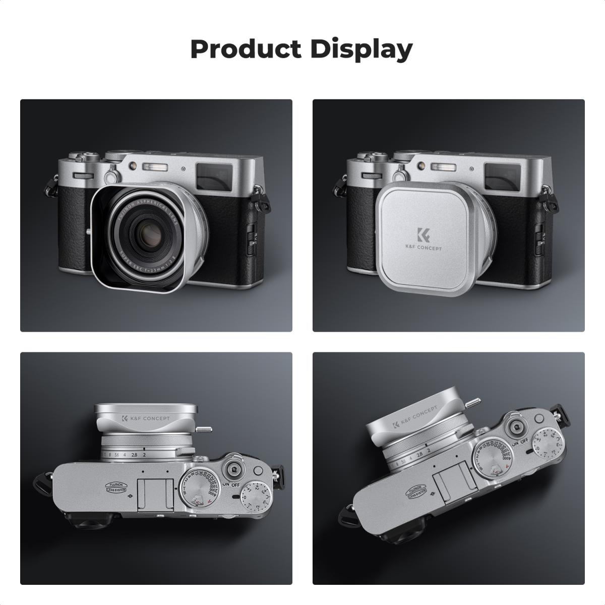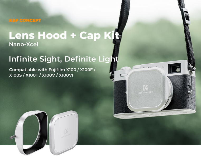 Fuji X100 Tapa del objetivo + protector del objetivo. Compatible con Fuji X100, X100F, X100S, X100T, X100V y X100VI. Un parasol y una tapa de objetivo de diseño exclusivo para los filtros de las cámaras de la serie Fuji X100, que combinan a la perfección con el clásico aspecto retro de la cámara.