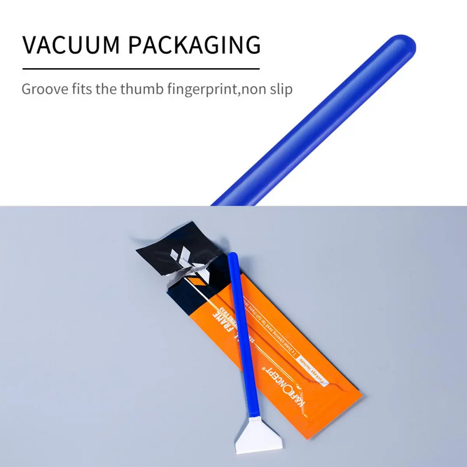 El kit de limpieza para sensores de fotograma completo K&F Full-Frame Cleaning Kit SKU.1599 contiene todo lo necesario para el mantenimiento de sensores de fotograma completo, incluyendo 16 bastoncillos de limpieza, un frasco vacío de 20 ml para el líquido limpiador y guantes de goma antipolvo. Los bastoncillos, de diseño ergonómico, protegen el sensor y garantizan una limpieza segura y eficaz.