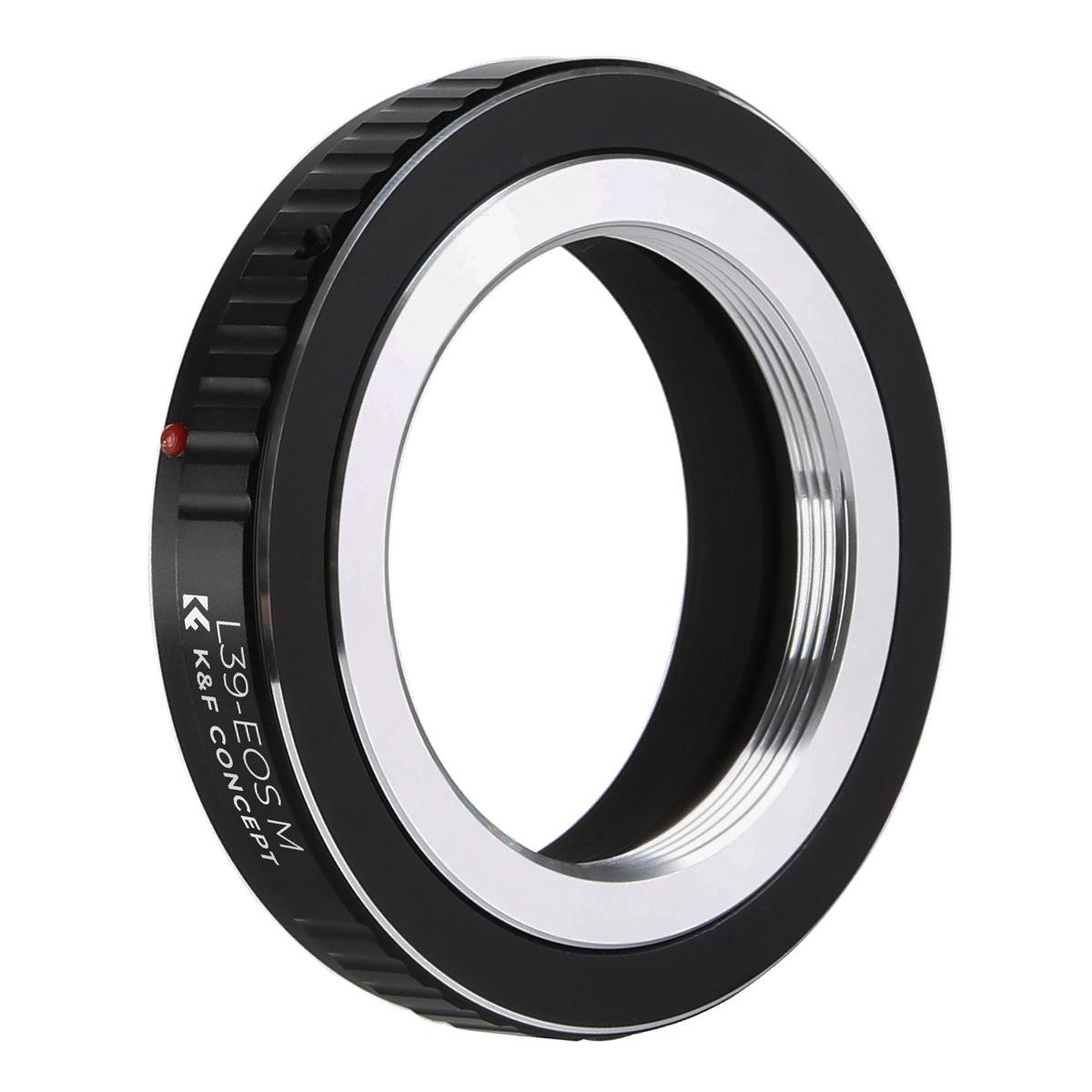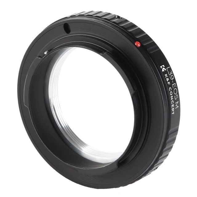 El adaptador de objetivo K&F M39 para Canon EOS M permite utilizar objetivos con montura Leica M39 en las cámaras sin espejo Canon EOS M. Está fabricado en latón y aluminio, ofrece un acoplamiento preciso, un control totalmente manual y permite enfocar al infinito.