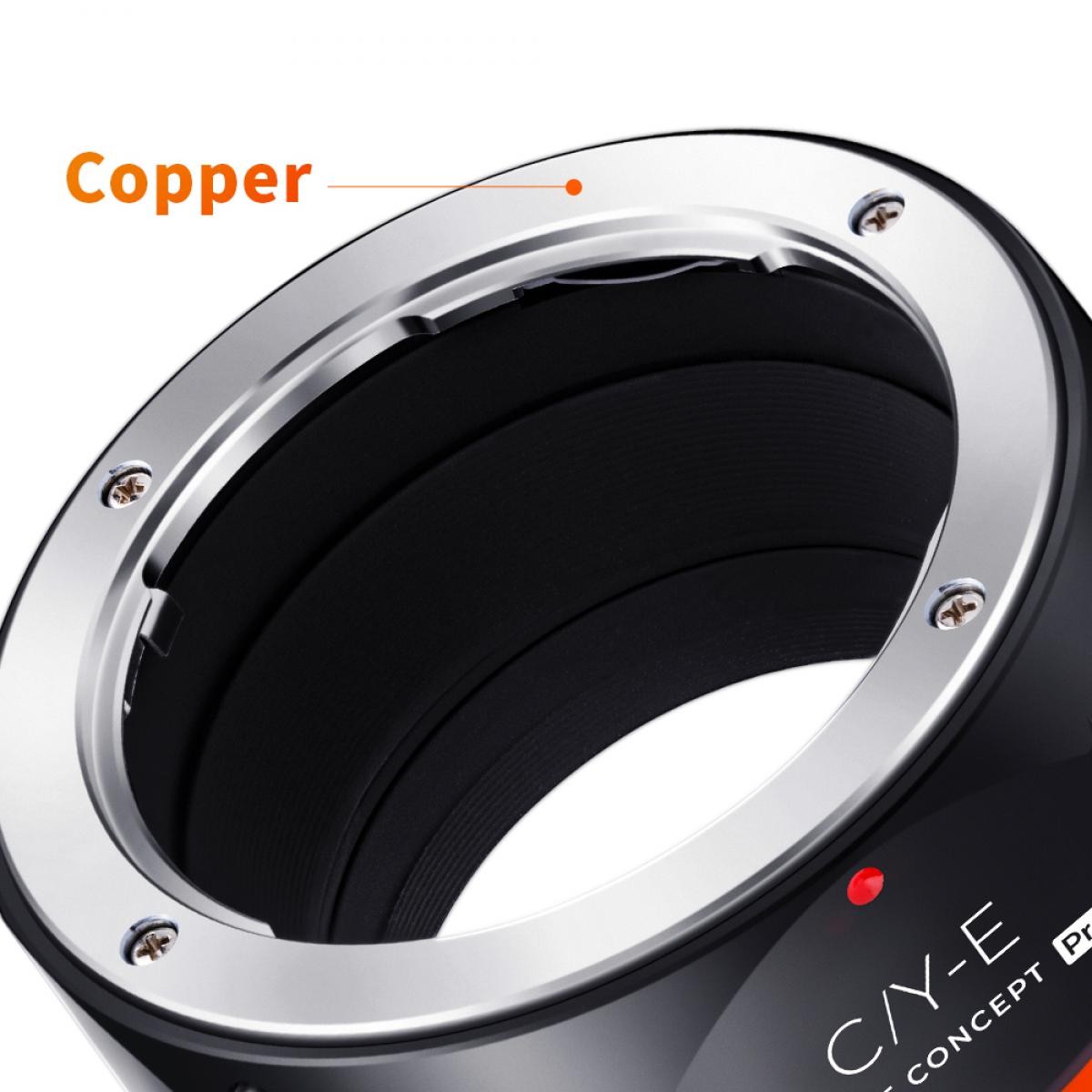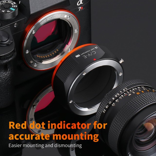 El adaptadorK&F Concept C/Y-NEXpara enfoque manual es compatible conlos objetivos Contax / Yashica (C/Y)para cámaras con montura NEX E-Mount.