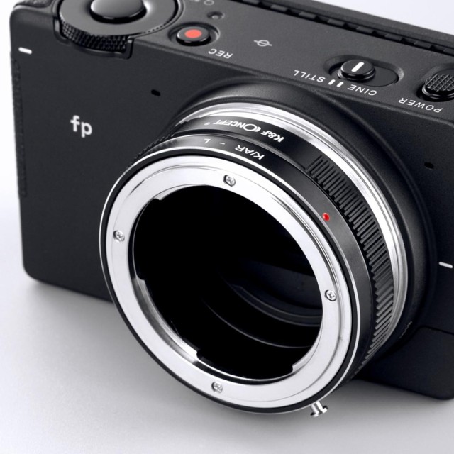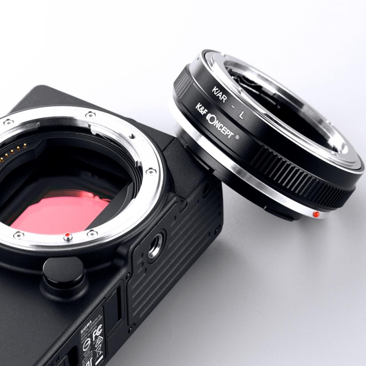 El adaptador de objetivo de alta precisión K&F K/AR-L permite utilizar objetivos Konica AR en cámaras Leica L. Está fabricado en cobre y aleación de aluminio, y ofrece un acoplamiento suave, control manual del diafragma mediante un anillo de diafragma integrado y compatibilidad con el enfoque infinito.
