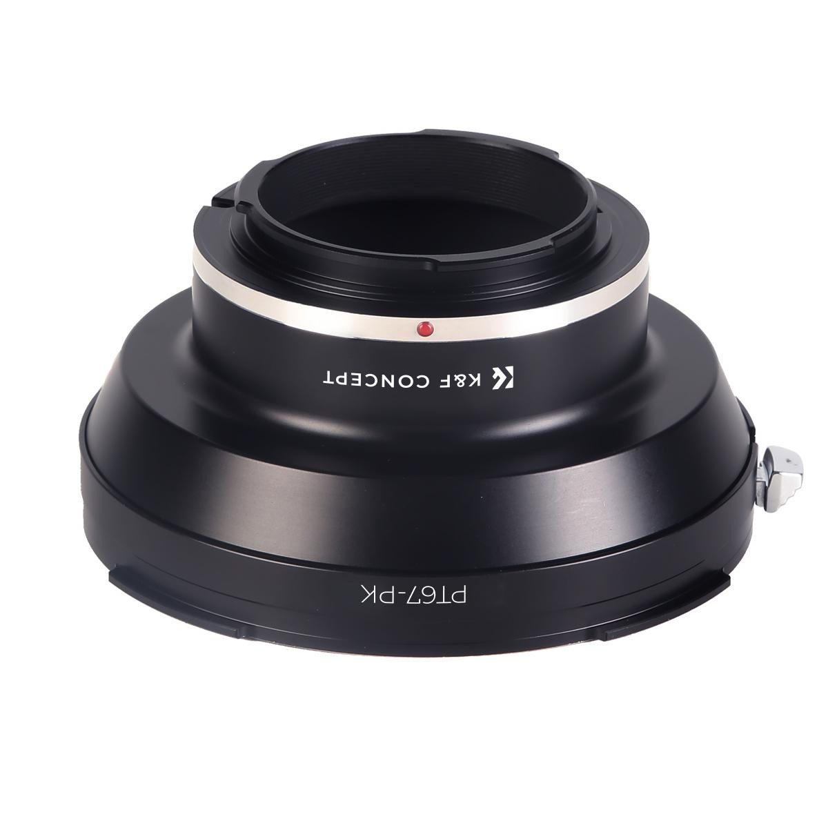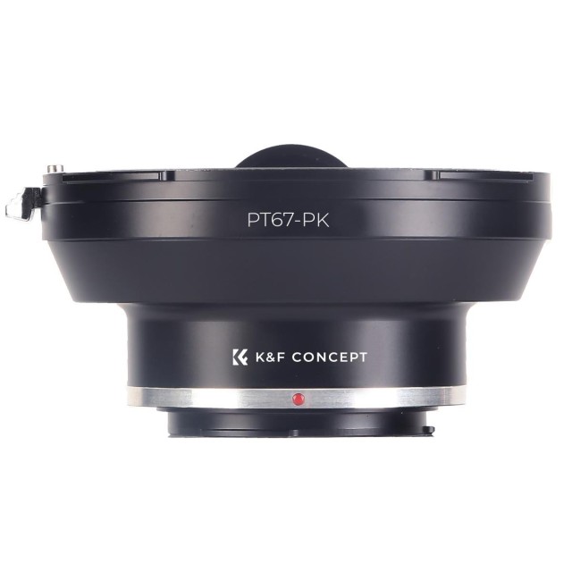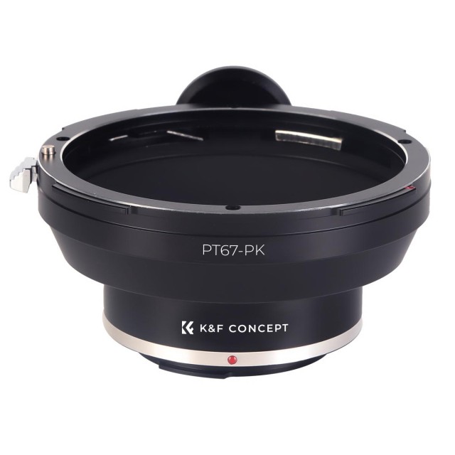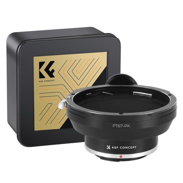 El adaptador K&F Pentax 67 a Pentax K permite acoplar objetivos de formato medio Pentax 67 a cámaras réflex digitales y sin espejo Pentax con montura K. Cuenta con una resistente estructura totalmente metálica, un funcionamiento manual fluido y es compatible con el enfoque infinito.