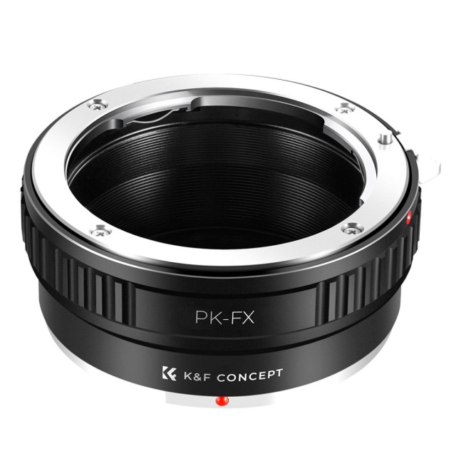 El adaptador de objetivo de alta precisión K&F PK-FX permite utilizar objetivos con montura Pentax PK en las cámaras sin espejo de la serie X de Fujifilm. Está fabricado en aluminio anodizado y permite el enfoque manual hasta el infinito.