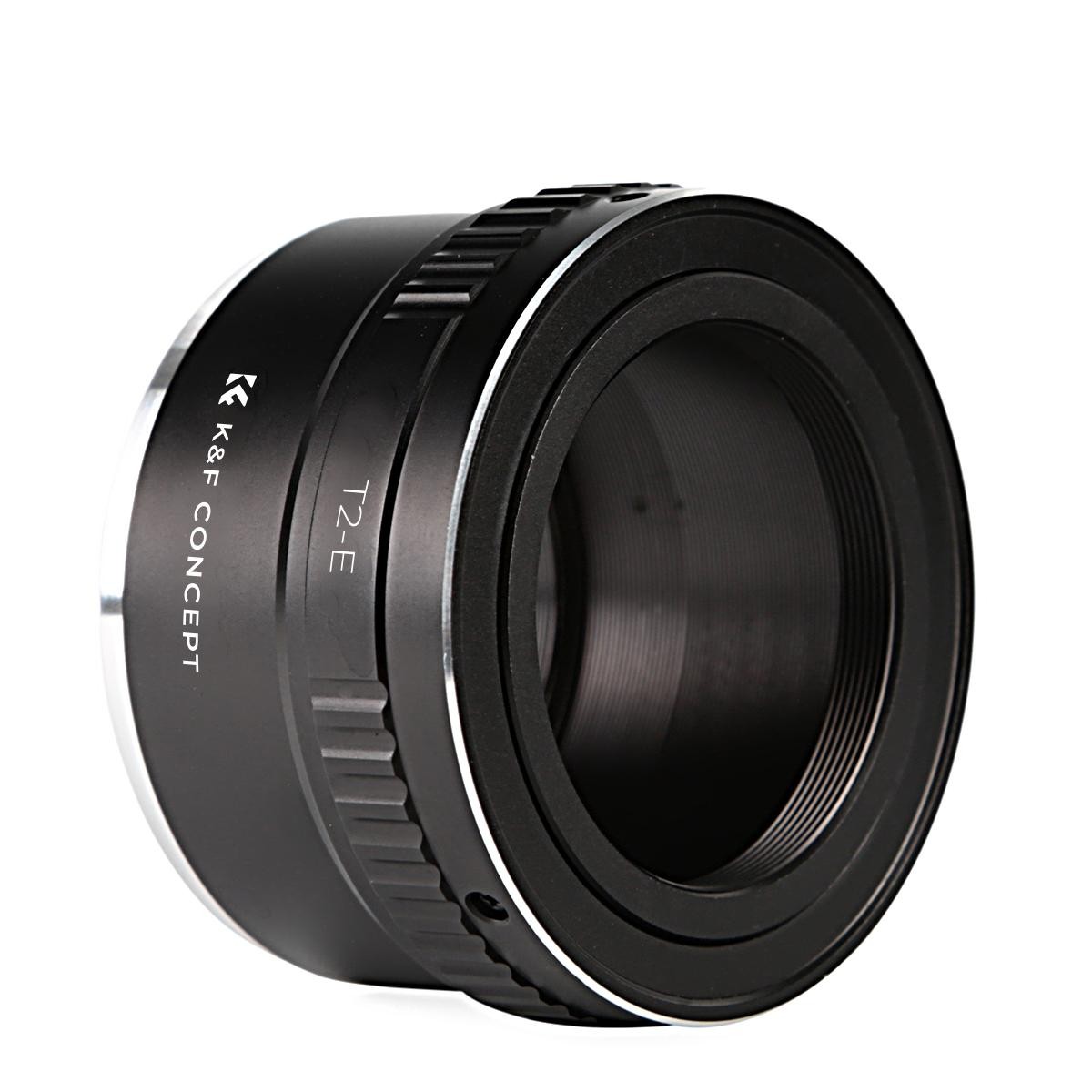 El adaptador K&F High Precision T2 para Sony E-Mount permite utilizar objetivos con montura T2 en cámaras sin espejo Sony E-mount. Destaca por su resistente estructura de latón y aluminio, su preciso manejo manual y su compatibilidad con el enfoque infinito.