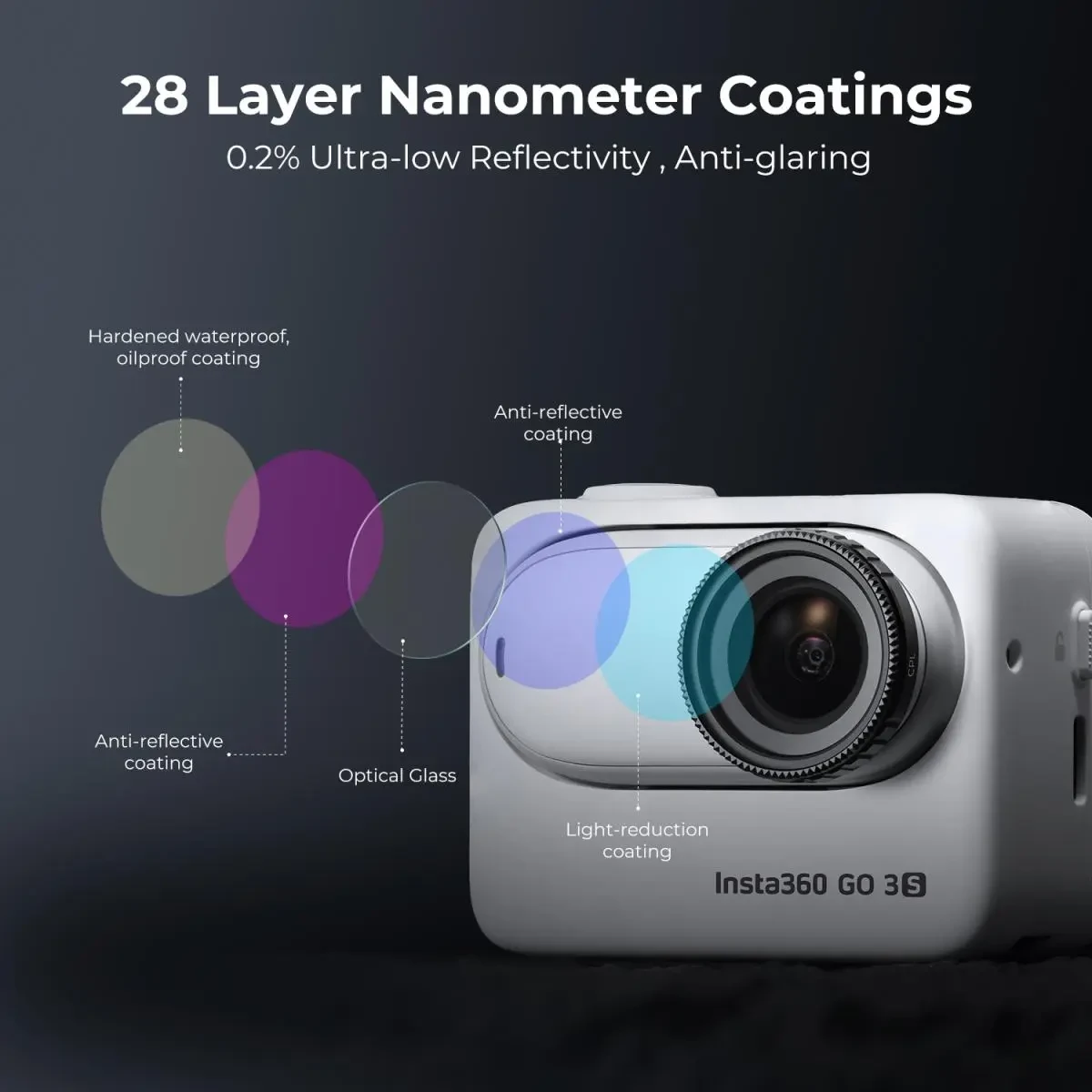Filtro polarizador circular CPL K&F Concept Go 3S, compatible con la cámara de acción Insta360 GO 3S, cristal óptico con 28 capas de tratamiento superficial (NO apto para la Insta360 GO 3). El filtro CPL elimina eficazmente los reflejos de superficies no metálicas, como el agua y el cristal, y mejora los colores y el contraste, especialmente al fotografiar cielos azules y nubes blancas.