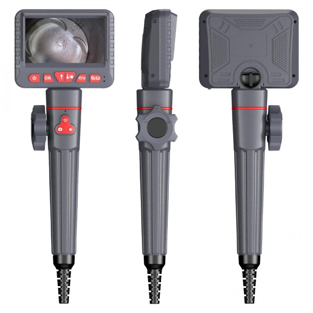Ángulo de flexión articulable: ajuste continuo de 0° a 180° y posibilidad de bloqueo en cualquier ángulo. Manejo muy sencillo: basta con pulsar el botón de liberación con el pulgar y ajustar el ángulo de la articulación. Satisface a la perfección las necesidades actuales de los clientes a la hora de inspeccionar ángulos difíciles dentro de espacios cerrados y oscuros.