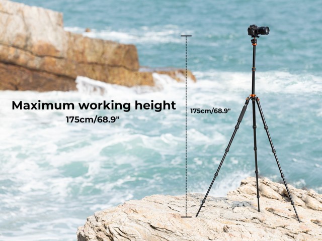 "* 【K&F Concept Compact & Portable】 Aleación de aluminio y magnesio de alta calidad, resistente a la corrosión; el trípode con rótula pesa solo 1,5 kg, se puede girar 180° y plegar hasta 42 cm, por lo que es fácil de guardar en una mochila o maleta cuando se viaja.