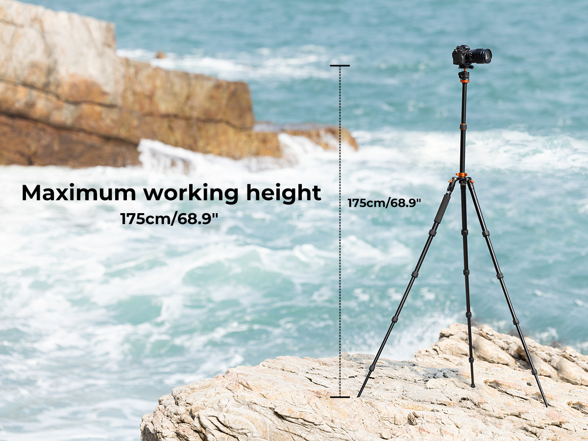 * 【FÁCIL AJUSTE】 5 secciones de patas tubulares y un diámetro máximo de 25 mm; el botón de bloqueo de tipo espiral permite ajustar la altura de trabajo en pocos segundos; la altura sin el tubo central alcanza los 51'' y la altura con 2 secciones del tubo central es de 67'', lo que facilita la fotografía de pie.